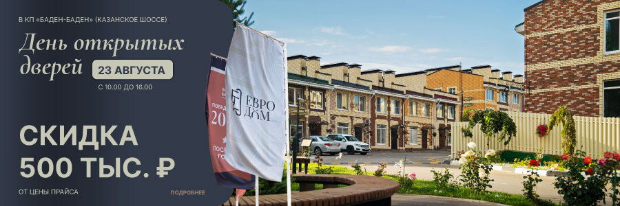 Ощути на себе все удовольствия жизни в городском таунхаусе на индивидуальной экскурсии с менеджером компании «Евродом»! Приходи на День открытых дверей 23 августа в КП «Баден Баден» с 10.00 до 16.00 и выбирай дом своей мечты! Внимание, действует предварительная запись по телефону 410-32-86.